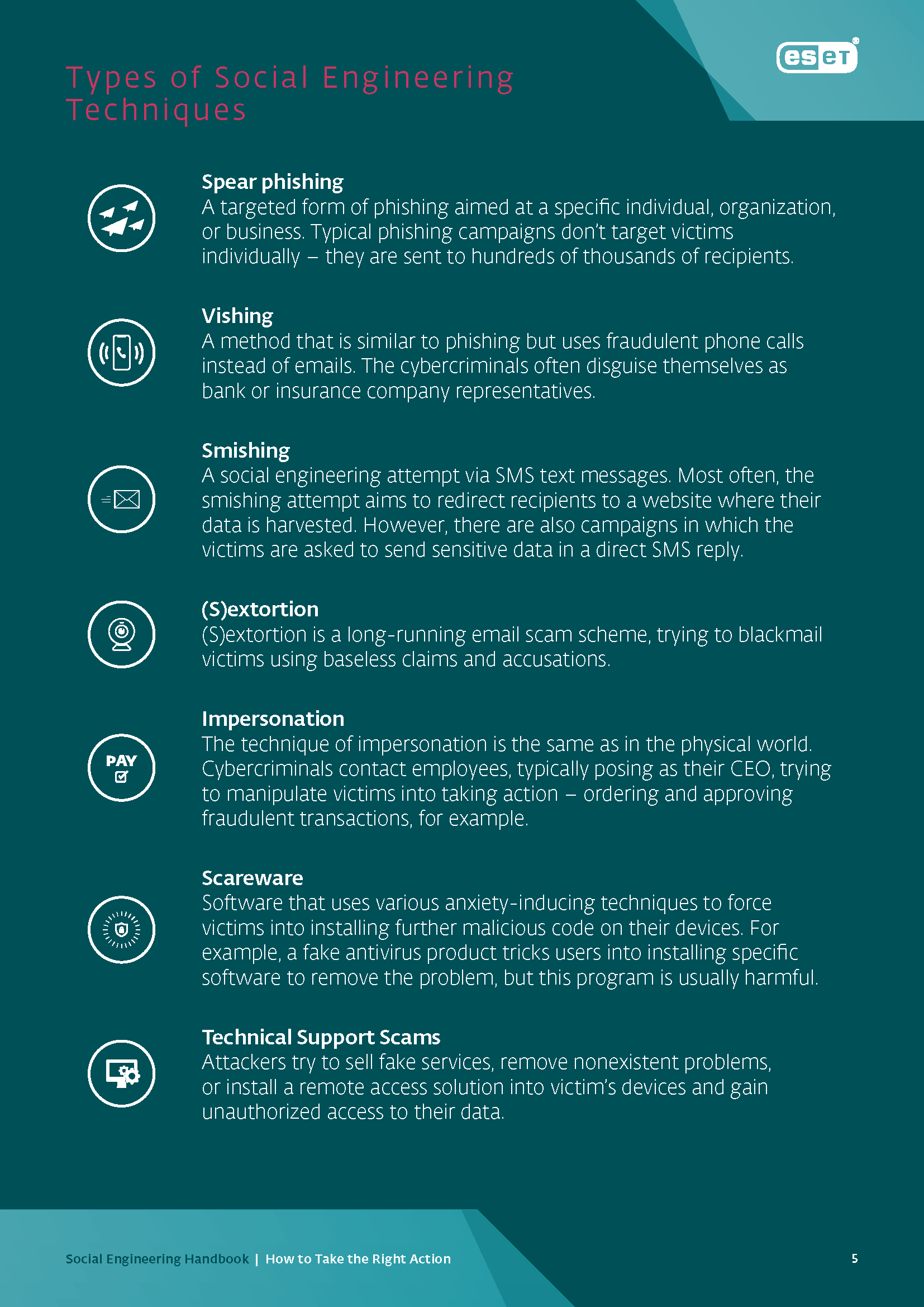- Socialinės inžinerijos metodų tipai - phishing, apsimetinėjimas: kai užpuolikas apsimeta generaliniu direktoriumi, darbuotojų šantažas, kiti socialinės inžinerijos technikų tipai, kuriuos turėtumėte žinoti.