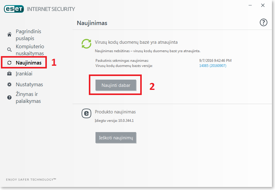 SVARBU! Visuomet naudokite naujausią ESET programos versiją