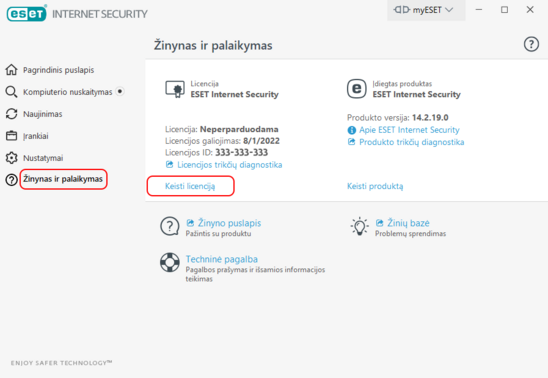 Jeigu nepavyko pakeisti licencijos rakto arba Jums kilo klausimų parašykite mums el. paštu pagalba@eset.lt arba paskambinkite tel. +370 5 233 9992.
