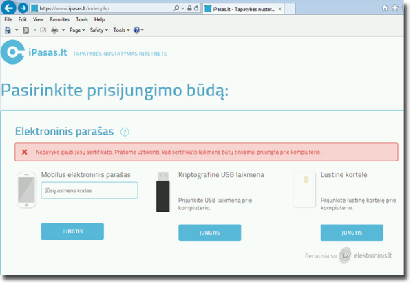 Pateikiame trumpą instrukciją, kaip išspręsti problemą, kai nepavyksta prisijungti prie tapatybės internete nustatymo puslapio, pavyzdžiui, www.ipasas.lt.
