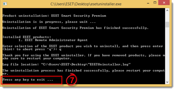 Programa parodys įdiegtus ESET produktus. Iš pateikto sąrašo pasirinkite norimą išdiegti programą, įveskite jos skaičių ir spauskite „Enter“.