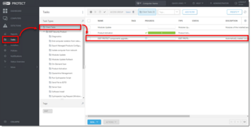 7. Paspauskite Tasks norėdami pamatyti klientinių užduočių sąrašą. Atlikus užduotį visiems kompiuteriams, ESET programinė įranga atsinaujins į naujausią versiją.