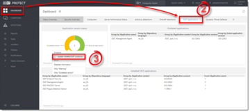 3. Diagramoje Application version status kairiuoju pelės mygtuku paspauskite geltoną diagramos skyrių ir pasirinkite Update installed ESET products.