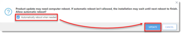 6. Pažymėkite laukelį šalia Automatically reboot when needed ir paspauskite Update. Jeigu norite, kad kompiuteriai būtų perkrauti vėliau, nuimkite laukelio žymėjimą.