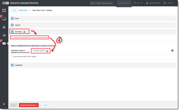 4. Išskleiskite skiltį Settings, pažymėkite laukelį I agree with application End User License Agreement ir paspauskite Choose server. Rekomenduojame pažymėti laukelį Automatically reboot when needed.