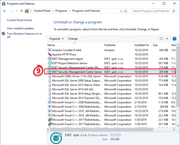 9. Norėdami patikrinti, ar jūsų serveris sėkmingai atsinaujino į ESMC, valdymo skyde atidarykite Programs and Features. ESMC turi atsirasti programų sąraše.
