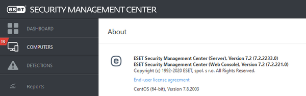 Kai atsinaujins ESMC valdymo konsolė (patikrinti galite nuėję į HELP > About), galėsite darbo vietose su Client Tasks užduotimi Security Management Center Components Upgrade atnaujinti ESET valdymo agentus pagal instrukciją.
