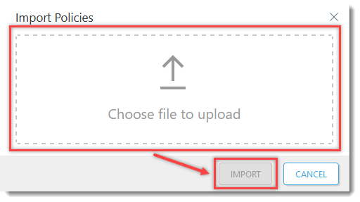 3. Pasirinkite vieną atsisiųstą politiką, kurią norite įkelti, ir spustelėkite „Import“.