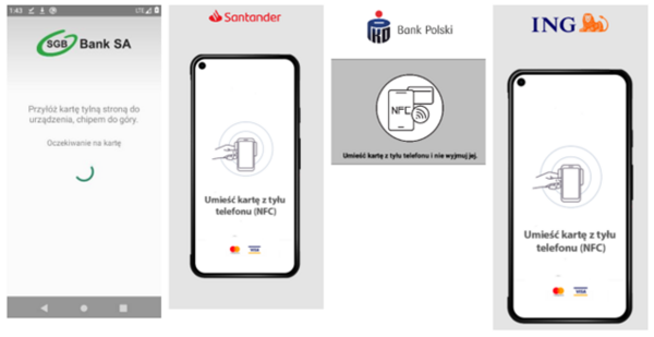 Przykłady wymuszenia akcji przyłożenia karty płatniczej do telefonu z włączonym NFC. Fot. CERT