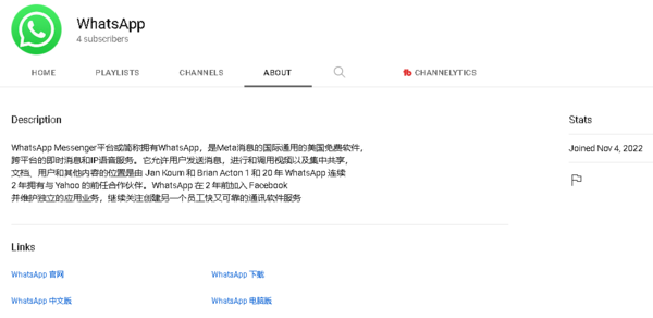 Figura 4. Falso canal de e YouTube de WhatsApp dirige a las potenciales víctimas a un sitio web falso