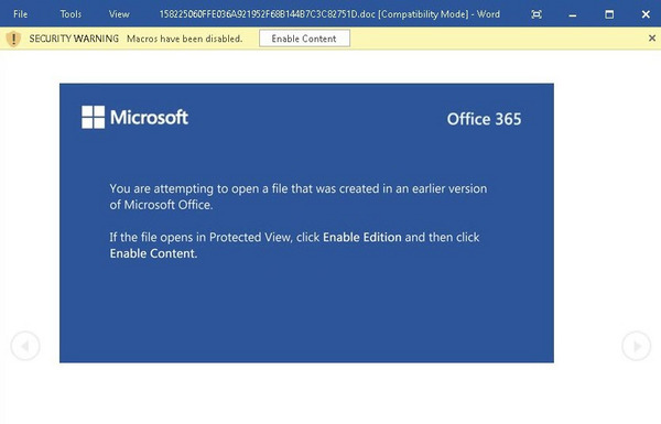 Últimamente se ha registrado con mayor frecuencia campañas en las cuales se despliegan mensajes que simulan ser de Windows y que hacen referencia a una actualización o informan que el documento se creó con una versión anterior de un software del paquete Office. En cualquiera de los dos casos, el usuario tiene que habilitar el contenido del documento para poder visualizarlo.