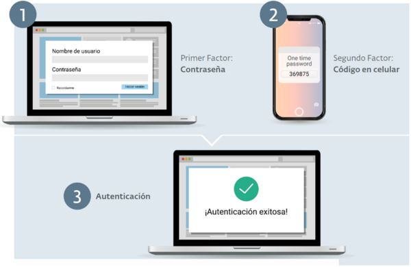 Esta medida de seguridad adicional puede ser configurada para recibir en el teléfono un mensaje vía SMS con un código de un solo uso de seis dígitos que se debe ingresar para acceder a las cuentas. En caso de que un cibercriminal haya obtenido de alguna manera las credenciales, necesitará tener en su poder también el teléfono de la cuenta para recibir el código y acceder a la misma.