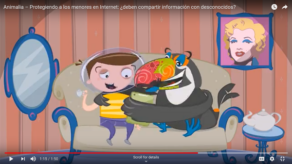 Pie de imagen: Primer capítulo de Animalia, sobre por qué es importante no compartir información con personas desconocidas y en espacios que no son privados.