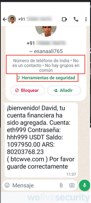 Además, tener cuidado frente a mensajes de texto, WhatsApp u otros medios de mensajería que buscan, como el phishing, estimular emociones y alentar a su víctima a proporcionar información confidencial o a hacer clic en enlaces maliciosos. También, está el secuestro de cuentas mediante estafas, en los cuales los cibercriminales se hacen pasar por agentes de los servicios de cuentas, como WhatsApp, y solicitan a su víctima un código de verificación que termina siendo la puerta de entrada para que el cibercriminal pueda tomar control de la cuenta de su víctima.