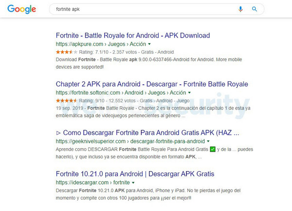 Imagen 1. Sitios de terceros para descargar ejecutables de Fortnite.