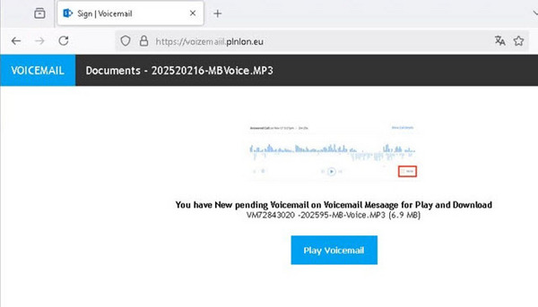 El Laboratorio de ESET Latinoamérica, en su análisis del caso, detectó que luego de descargar el archivo malicioso se abre el navegador en una página que ofrece un link para poder escuchar el supuesto voicemail. Al hacer clic en “listen to voicemail”, el enlace redirecciona a un sitio de phishing que se hace pasar por Outlook.