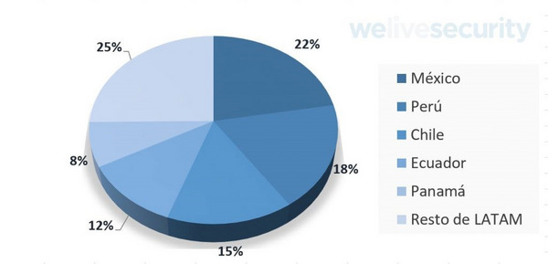 En 2019, las detecciones de malware para Android se concentraron mundialmente en Rusia (15,2%), Irán (14,7%) y Ucrania (7,5%). El primer país latinoamericano en aparecer dentro del ranking internacional es México (3%) en el séptimo puesto, seguido por Perú (2%) en el decimocuarto lugar. Si se toma en cuenta solamente detecciones en países latinoamericanos, en 2019 los países con mayores detecciones fueron México (25%), Perú (15%) y Brasil (15%).