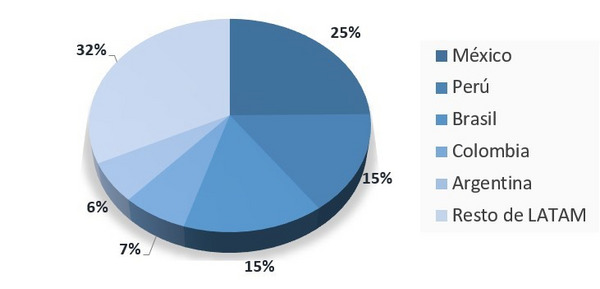 Gráfico 2. Distribución geográfica de detecciones de malware para Android en Latinoamérica durante 2019.
