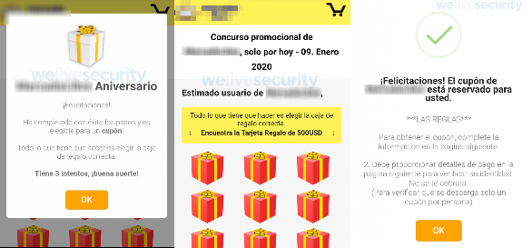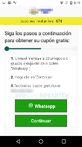 Una vez que verifican que la víctima cumplió con el requisito de compartir con sus contactos el mensaje, continúa el engaño. A partir de este paso, la obtención del cupón se reduce al “azar” y elegir la supuesta caja que contiene el prometido premio. “Habiendo analizado el engaño desdediferentes dispositivos y a lo largo de distintas horas, ESET identificó que la cantidad de cupones disponibles no se modificó y que en las pruebas realizadas siempre se ganó, sin importar la caja seleccionada.”, asegura Lubeck.