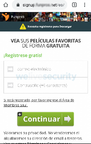 Imagen 8. Sitio de streaming en el cual se solicitará a la víctima suscribirse e ingresar información personal.