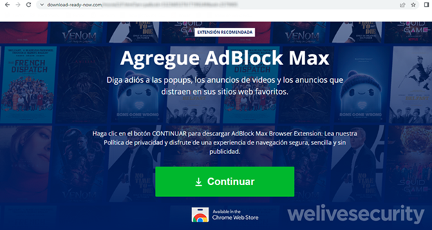 Imagen 6. Ejemplo de una supuesta extensión para bloquear anuncios desde un sitio que no es el repositorio oficial de extensiones de Google Chrome.