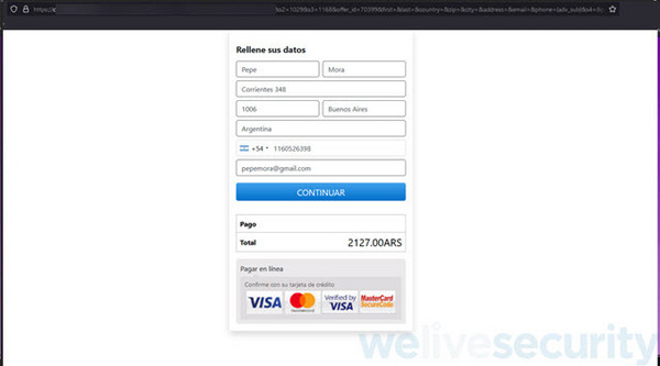 Según ESET, los ciberatacantes buscan que las víctimas paguen un monto en pesos y, si ingresan datos no válidos, el sistema advierte la situación, incitando a la víctima a proporcionar datos verdaderos para realizar el pago. Esta verificación de los datos la realizan los cibercriminales a partir de una página legítima de compra de gift cards, usando su pasarela de pago, que contrasta los datos ante las principales empresas de tarjetas de crédito.