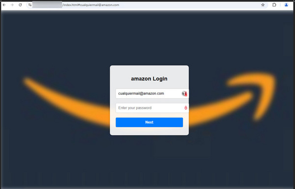 Pie de imagen: Login falso derivado del enlace del correo de phishing dinámico.