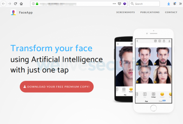 En una de las estafas los atacantes utilizan un sitio web falso en el cual se ofrece la versión “Premium” de FaceApp de forma gratuita.