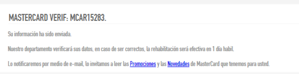 Los cibercriminales detrás de esta campaña buscan ganar tiempo informándole a la víctima que el proceso de verificación de los datos y la rehabilitación de la cuenta tardará un día. Luego, la víctima es redirigida al sitio oficial donde si ingresa sus credenciales podrá acceder a su cuenta sin problemas.