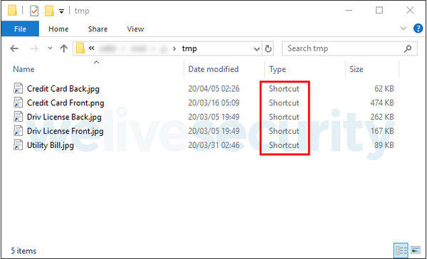 Una vez que se abre un archivo de acceso directo, busca en los contenidos de su propio archivo líneas con un marcador específico y las escribe en un archivo .js. Luego, este archivo JavaScript malicioso es ejecutado y, además de abrir, escribe un archivo señuelo con el mismo nombre que el acceso directo, pero con la extensión correcta. También elimina el archivo de acceso directo. Los documentos utilizados como señuelo son principalmente fotos de tarjetas de crédito, documentos de identidad o facturas con comprobante de domicilio, ya que muchas instituciones financieras requieren estos documentos de sus clientes cuando se unen.