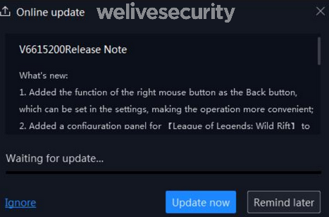 “Se identificaron tres familias de malware diferentes que se distribuían a partir de actualizaciones maliciosas personalizadas a víctimas seleccionadas, sin señales de que se persiga una ganancia financiera, sino a capacidades relacionadas con el monitoreo o vigilancia.”, comentó Ignacio Sanmillan, Malware Researcher de ESET. Los investigadores detectaron similitudes entre algunos de los loaders utilizados en esta operación con otros monitoreados en el pasado, como los que descubrieron como parte del compromiso de un sitio web de la oficina presidencial de Myanmar en 2018, y a principios de 2020 en una intrusión que afectó a una Universidad de Hong Kong.