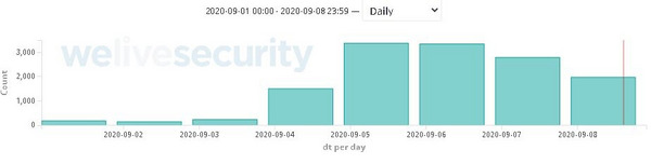 ESET detalla la correlación que existe entre el comportamiento de las detecciones a lo largo de los días y la fecha de lanzamiento de la película.