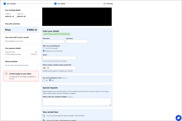 Pie de imagen: Ejemplo de formulario falso de Booking.com creado por Telekopye