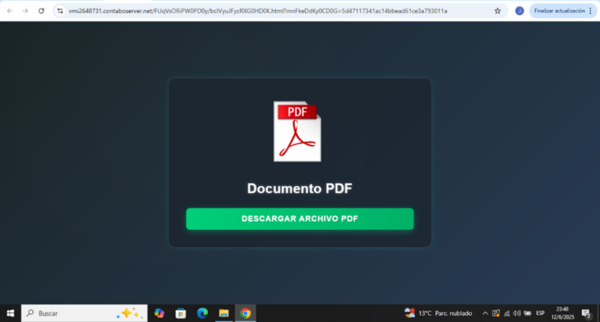 También es interesante comprender qué sucede al hacer clic en “Ver Documento Fiscal”. El enlace lleva a la potencial víctima a la página que mostramos a continuación: