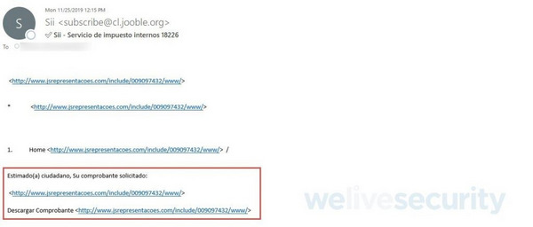 En el ejemplo, la estrategia utilizada para engañar a la potencial víctima es un correo que aparenta provenir de una entidad gubernamental en el cual se envía el comprobante de pago de un impuesto. El objetivo es despertar la curiosidad del usuario, ya que, si éste efectivamente realizó el pago de un impuesto, probablemente le interese guardar el comprobante; si no realizó tal acción, puede que haya un error de cobro y tenga interés en saber más sobre el asunto. En ambos casos, si el usuario decide abrir el enlace para descargar el supuesto comprobante, ya habrá dado inicio al proceso de infección.