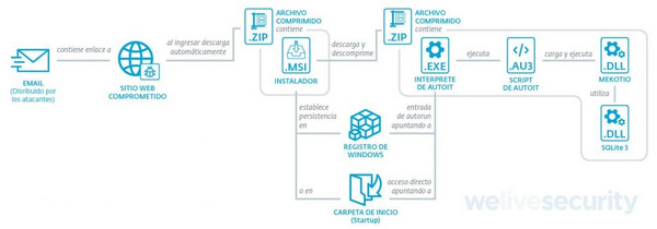 Buenos Aires, Argentina – Mekotio es una familia de troyanos bancarios que apunta a sistemas Windows y tiene como objetivo obtener dinero o credenciales de acceso del servicio de banca electrónica de sus víctimas. En su análisis, ESET, compañía líder en detección proactiva de amenazas, revela que el malware apunta a más de 51 instituciones bancarias. En un principio tuvo como único objetivo a usuarios de países Latinoamericanos, comenzando con un fuerte foco en Brasil y luego centrándose en Chile. Sin embargo, en el transcurso de los últimos meses se han registrado variantes de Mekotio dirigidas especialmente a usuarios de España, lo que indica que los cibercriminales están expandiendo sus operaciones constantemente.