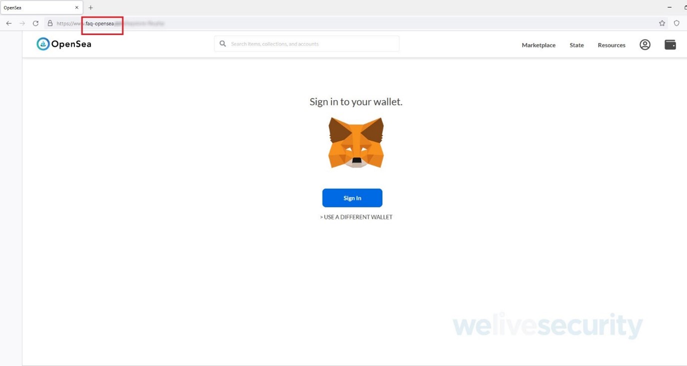Figura 2. Ejemplo de falso sitio de OpenSea