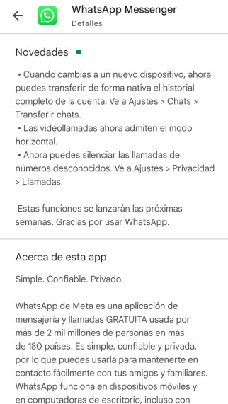 Actualización periódica: Aunque los consejos están dirigidos a WhatsApp, está aquí para todas y cada una de las aplicaciones del dispositivo. Actualizarlo periódicamente trae varios beneficios con respecto a las funcionalidades, pero también permite que, si la empresa que desarrolló la aplicación ha corregido algún fallo, también pueda hacer uso de estas actualizaciones de seguridad.