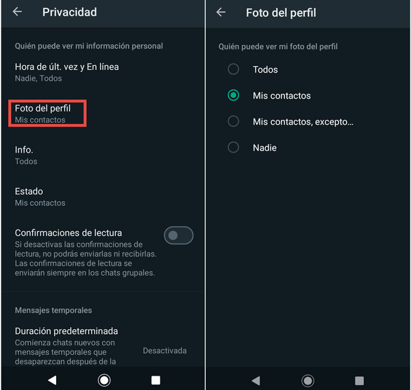 Por lo general, los delincuentes contactan a las personas agendadas por la víctima de suplantación de identidad y las engañan haciéndoles creer que cambiaron su número de teléfono, logrando la confianza para cometer estafas con un perfil falso. Usando la foto real, le dan verosimilitud a la historia. Por eso, cuanto más restrictiva sea la visualización de la foto, más segura será. Desde ESET recomiendan que la configuración se realice para la opción “Mis contactos”, así solo las personas agendadas podrán ver la foto, o “Mis contactos, excepto” que restringe aún más la visualización y permite una lista de personas que se tiene agendada pero tal vez no sean tan cercanas.