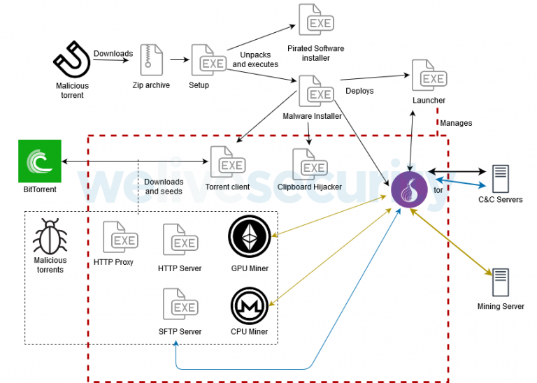 Además, las víctimas también son utilizadas para sembrar tanto los torrents utilizados por el malware como los torrents maliciosos que ayudan a propagarlo. Esto asegura que estos archivos estén ampliamente disponibles para que otros los descarguen, lo que ayuda a acelerar las descargas y proporciona redundancia.