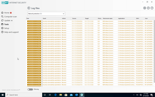 Para abordar los crecientes riesgos que plantea el aumento en el uso de RDP, los investigadores de ESET han ideado una nueva capa de detección que se oculta bajo dentro del motor de ESET Network Attack Protection. Esta tecnología, denominada ESET Brute-Force Attack Protection, está diseñada para bloquear los ataques de fuerza bruta entrantes de direcciones IP externas, y contempla los protocolos RDP y SMB.