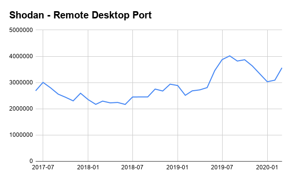 Para sorpresa de pocos, Shodan revela un reciente aumento en el número de dispositivos con RDP expuestos en Internet, que corresponden a la migración global al trabajo remoto que hemos visto en los últimos meses.