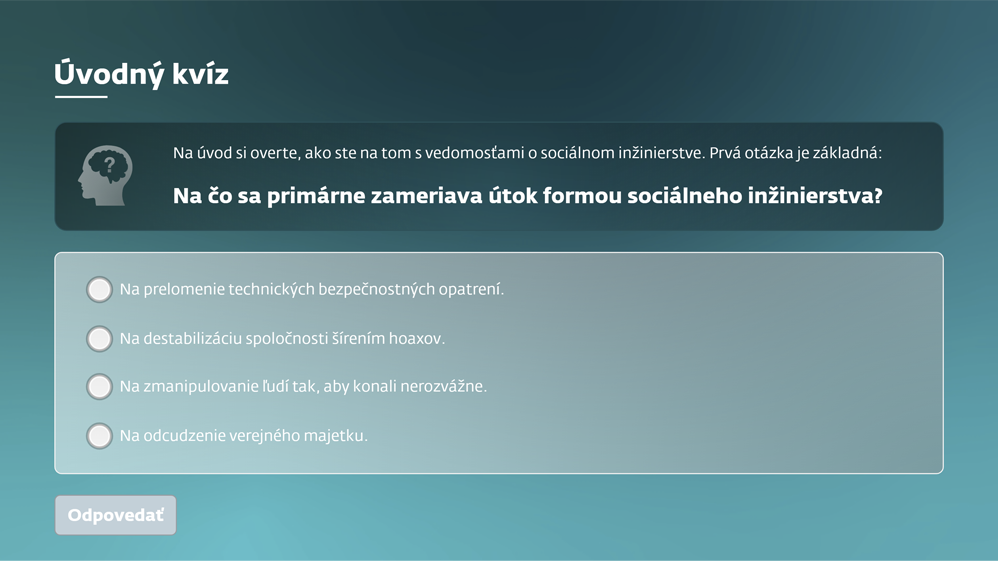 Oboznámte sa s teoretickými informáciami o sociálnom inžinierstve, jeho princípoch a formách a zvýšte si bezpečnostné povedomie pri ochrane firemných a súkromných dát.