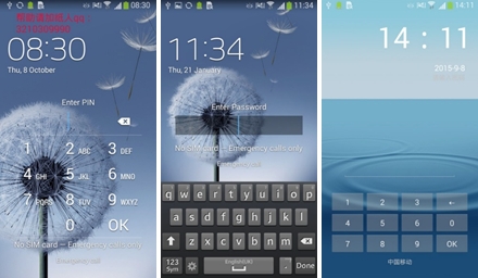 Príklady zablokovania monitora mobilného zariadenia zmenou PINu alebo hesla.