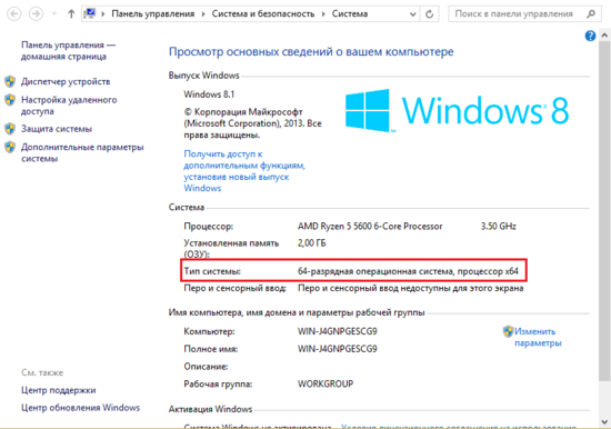Подведите курсор на правый край экрана, после чего всплывет боковая панель инструментов. Выберите пункт «Параметры» →«Сведения о компьютере». В выведенном окне Вы увидите: «Тип системы»: