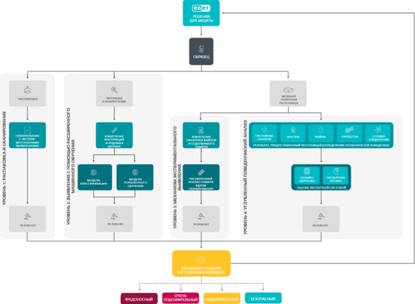 Мощное облачное решение, использующий технологии расширенного сканирования, современного машинного обучения, облачной песочницы и углубленного поведенческого анализа для предотвращения целенаправленных атак, а также новых типов угроз, в частности программ-вымогателей.