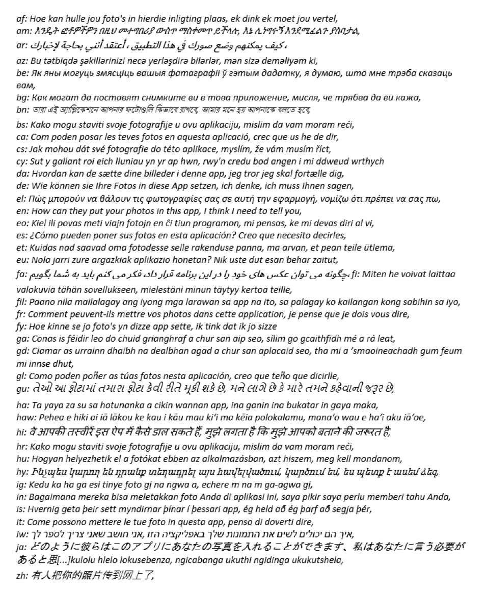 Fidye yazılımı, erişimini en üst düzeye çıkarmak için, Şekil 5'te görülen mesaj şablonunu 42 ayrı dilde gönderebiliyor. Kurbanın cihazının dil ayarına uygun mesajı gönderir. Yazılım bu mesajları kişiselleştirmek için kurbanın adını mesaja dahil eder.