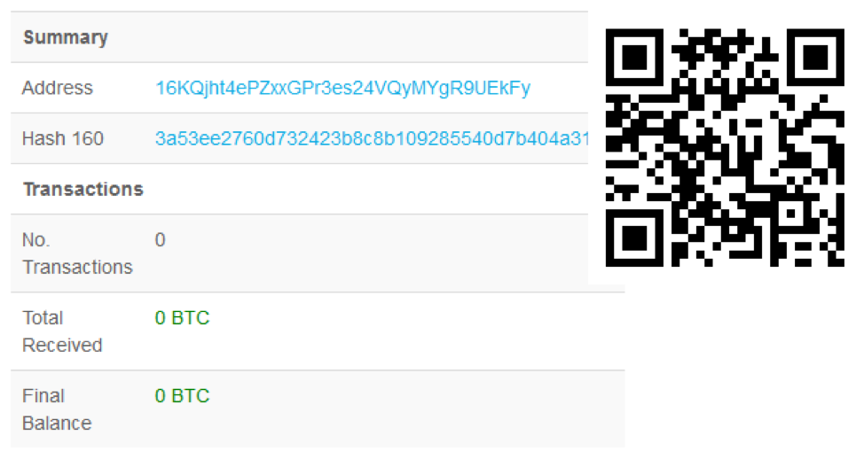 Şekil 9'da görüldüğü gibi dinamik olarak değiştirilebilen ancak gördüğümüz her durumda aynı olan söz konusu Bitcoin adresi yazı yazıldığı sırada hiçbir işlem kaydetmemiştir.