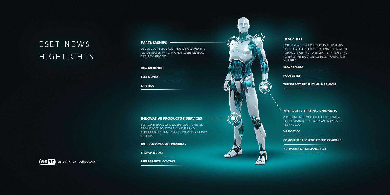 ESET® 30 yıldır, dünya çapında işletmeler ve tüketiciler için sektör lideri BT güvenlik yazılımı ve hizmetleri geliştirmektedir. Uç noktadan mobil güvenliğe, şifreleme ve iki faktörlü kimlik doğrulamaya kadar değişen çözümlerle ESET'in yüksek performanslı, kullanımı kolay ürünleri tüketicilere ve işletmelere teknolojilerinin tam potansiyelinin keyfini çıkarmaları için rahatlık sağlar. ESET, kullanıcıların güvenliğini ve işletmelerin kesintisiz çalışmasını sağlamak için 7/24 kesintisiz koruma sağlar ve korumasını gerçek zamanlı olarak günceller. Gelişen tehditler, gelişen bir BT güvenlik şirketi gerektiriyor. ESET dünya genelindeki AR-GE merkezleri sayesinde 2003 yılından bu yana her bir yaygın tehditi tespit ederek 100 Virus Bulletin VB100 ödülü kazanan tek BT firmasıdır. Daha fazla bilgi için www.eset.com adresini ziyaret edin veya bizi LinkedIn, Facebookve Twitter'da takip edin.