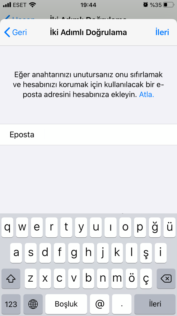 Daha sonra ekstra bir önlem olarak e-posta adresinizi girin.